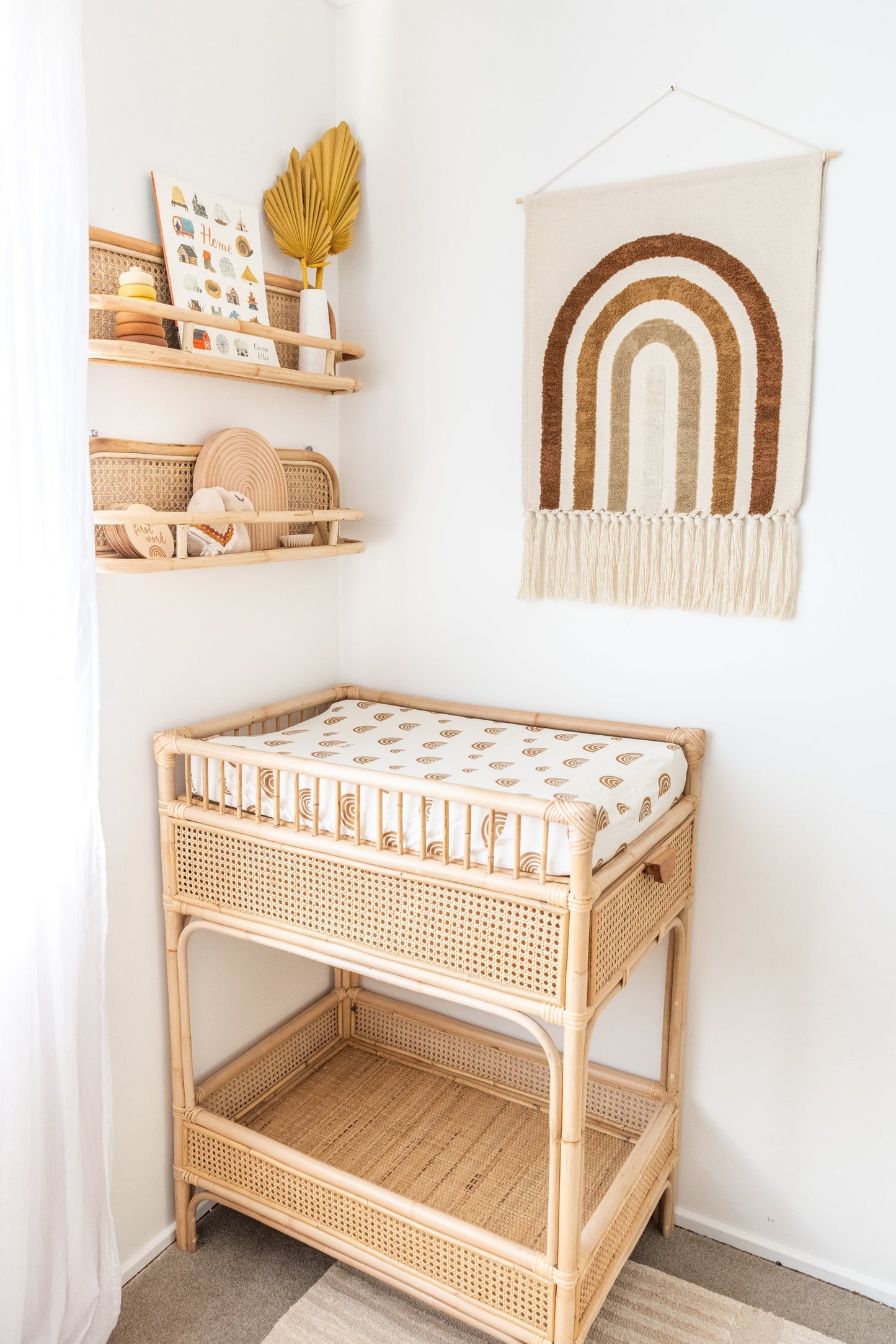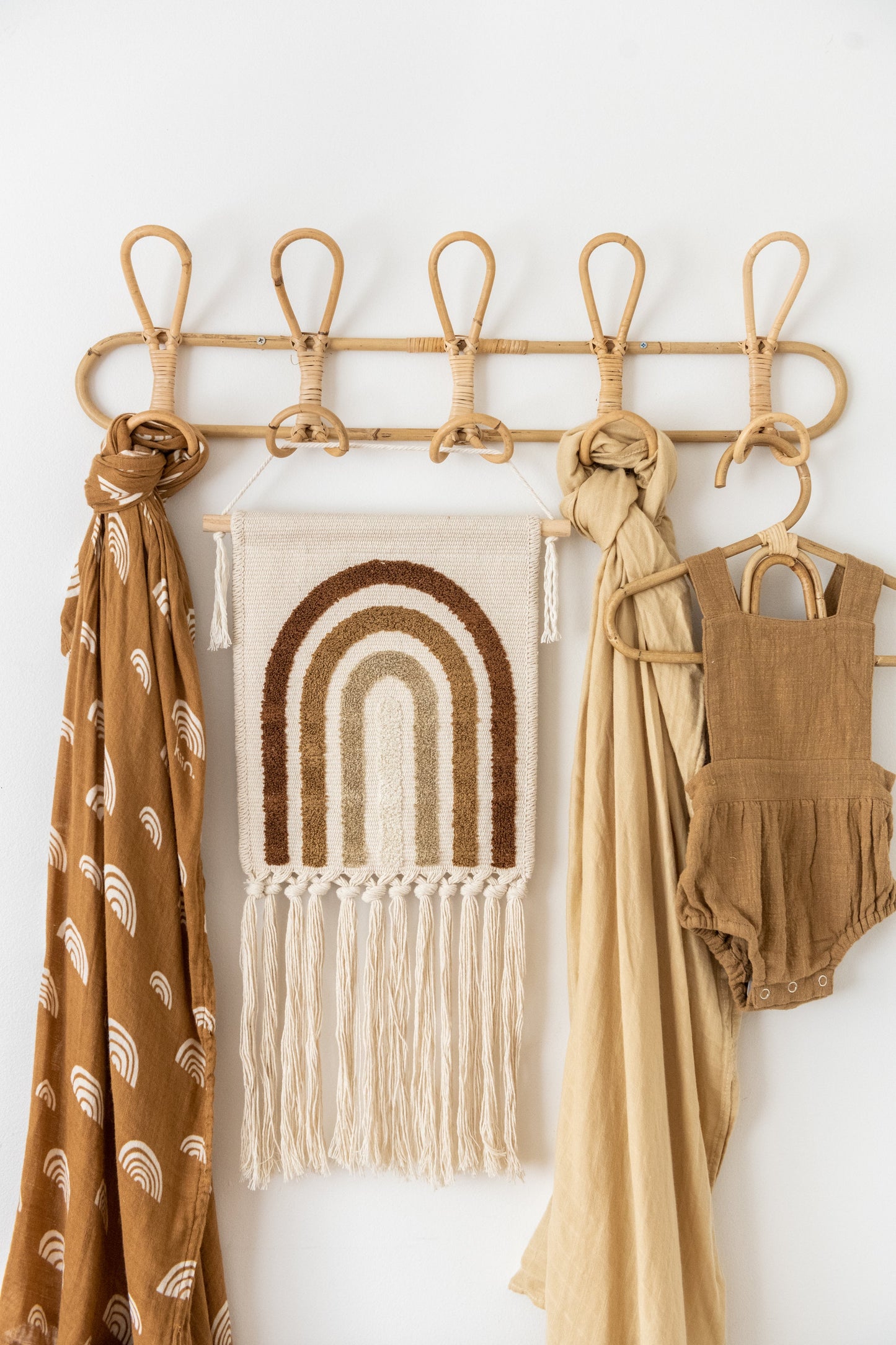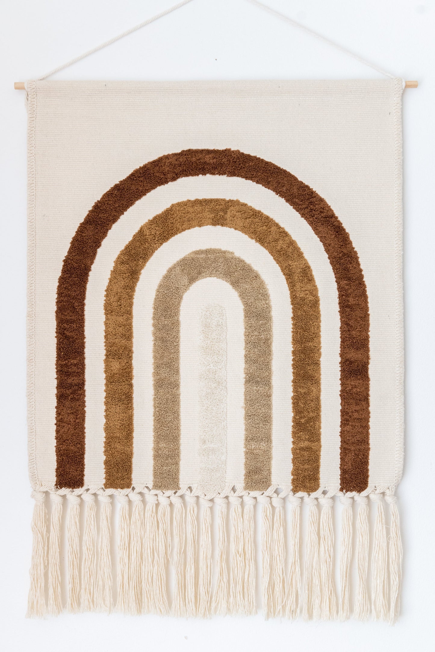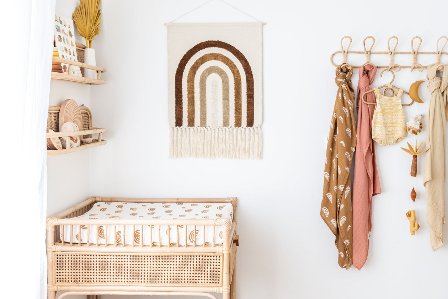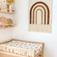 The Kiin Rainbow Wall Tapestry brings soft, bohemian charm to any space. Featuring a tufted rainbow in our signature earthy tones, this wall hanging is designed to add warmth, texture and a playful yet calming presence to your nursery, playroom or home.